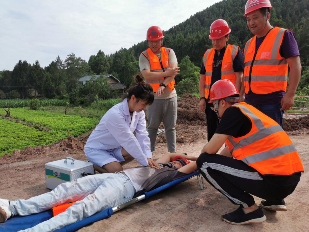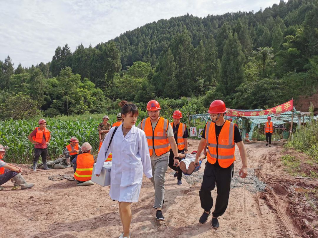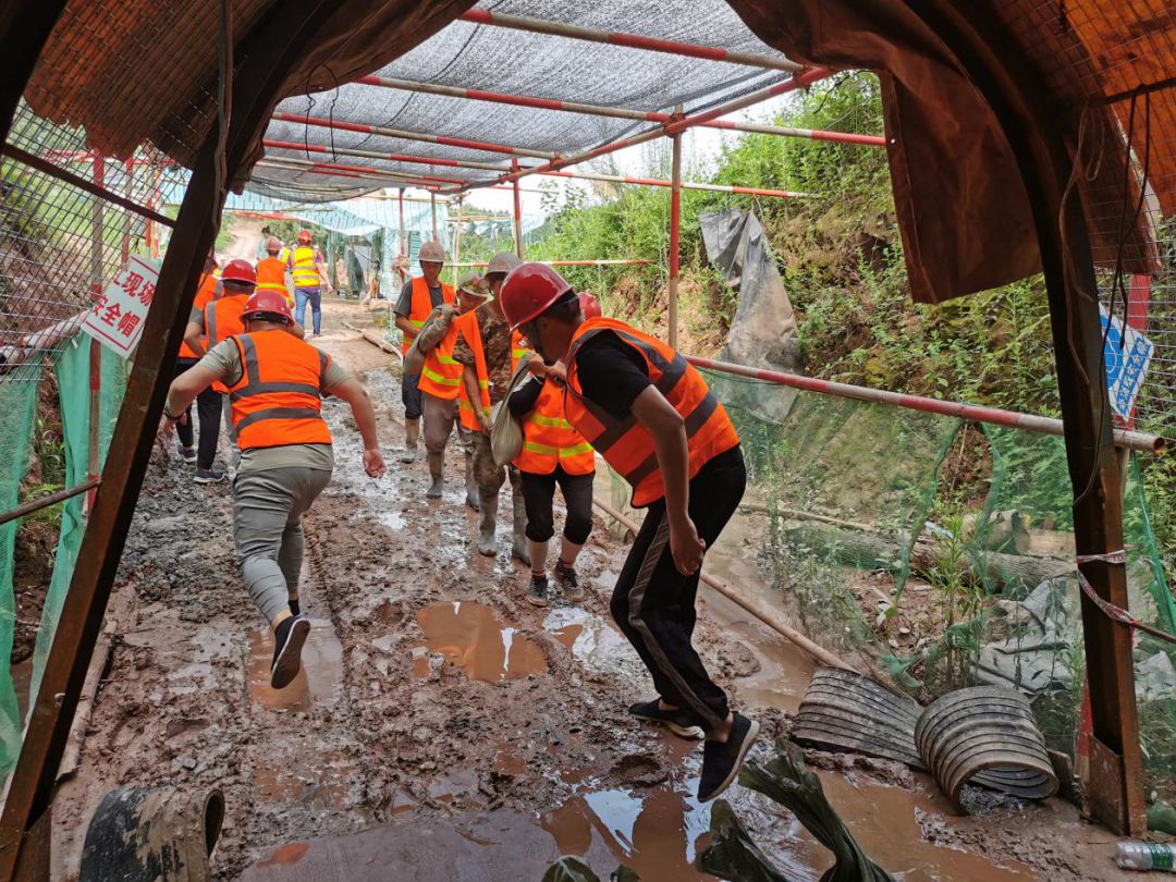 本次演練模擬大蒙子椏隧洞因雨水倒灌,導致掘進機組受損,現(xiàn)場工人重傷1人、輕傷2人的一般事故,從觀察水情,到構筑防水坎、啟動應急排水泵排水,模擬了防汛遇險應急處置的各項工作,各演練小組各司其責、分工協(xié)作、秩序井然,圓滿完成了演練任務。