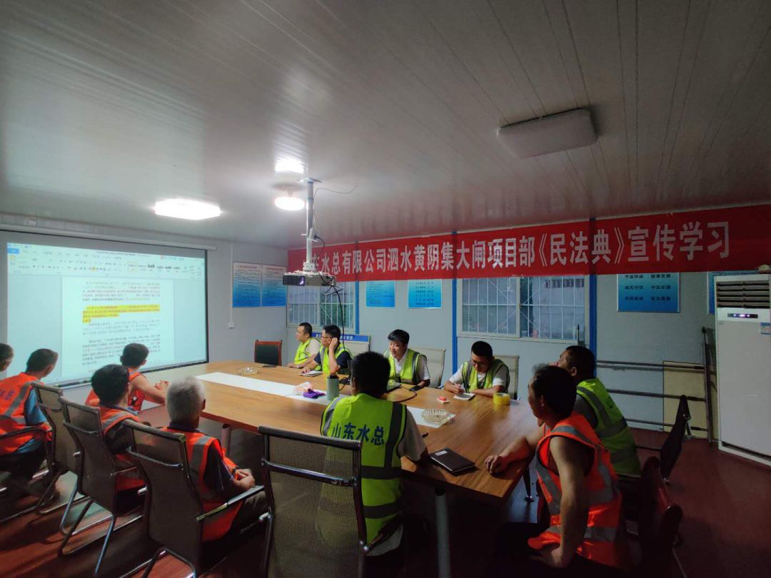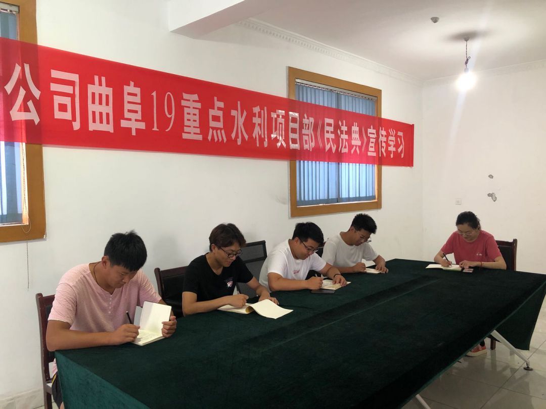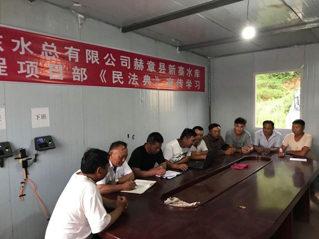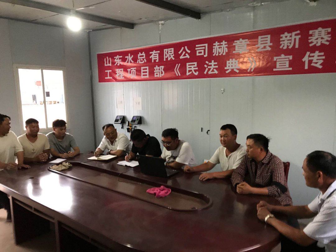 為響應(yīng)總公司法務(wù)與清收辦公室組織的“《民法典》宣傳月”活動, 7月23日晚上,泗水縣黃陰集大閘除險加固工程項目經(jīng)理部在工地會議室召開《民法典》學(xué)習(xí)宣貫會議、2020年7月25日,赫章縣新寨水庫工程項目部全體成員在會議室進(jìn)行《民法典》宣傳學(xué)習(xí)、曲阜2019年重點(diǎn)水利建設(shè)項目施工 一標(biāo)段在2020年7月28日進(jìn)行《民法典》學(xué)習(xí)、平塘縣擦耳巖水庫工程項目2020年7月29日進(jìn)行《民法典》學(xué)習(xí)、宣貫情況匯報如下: