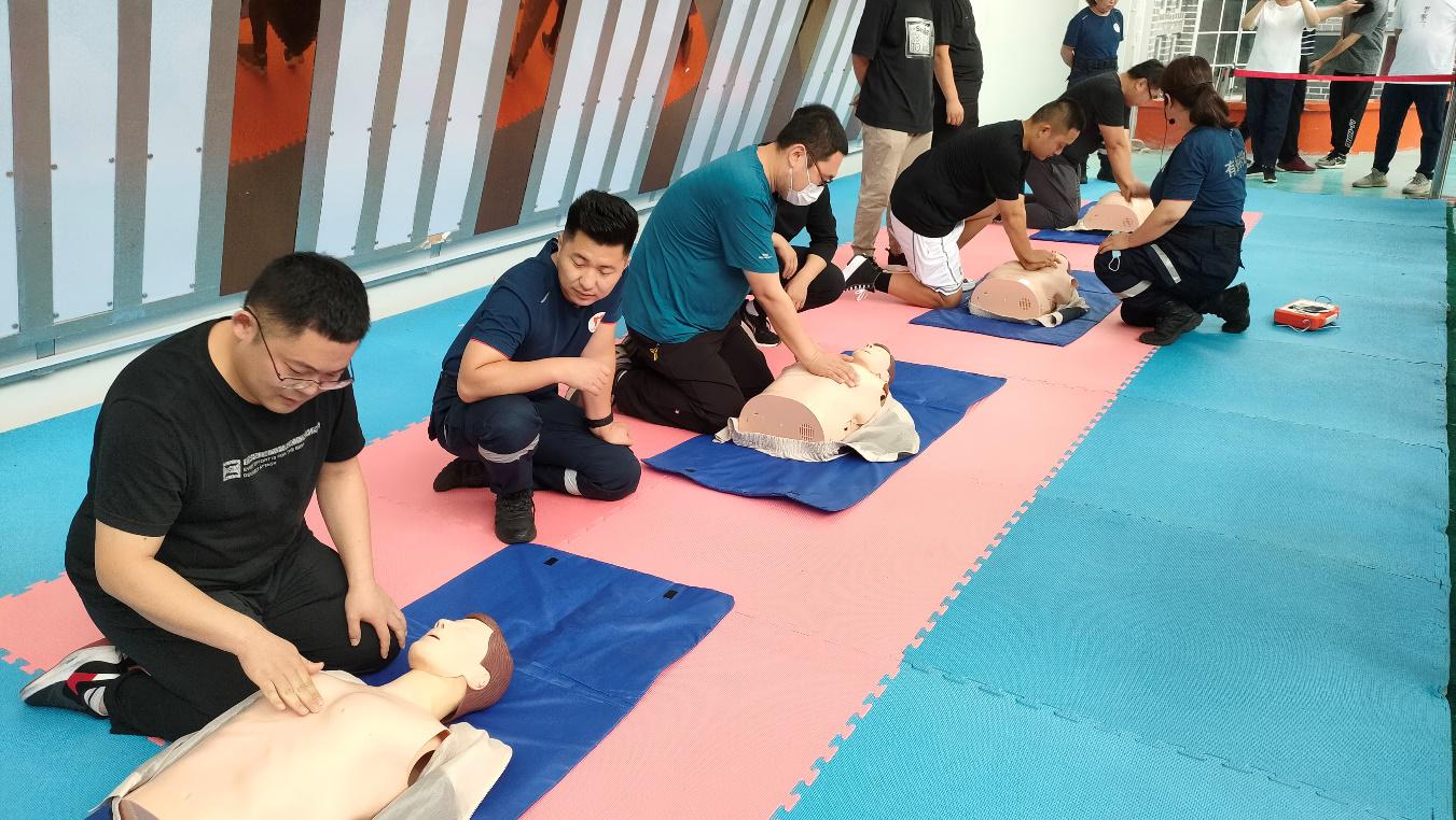 本次演練第一項(xiàng)為CPR(心肺復(fù)蘇技術(shù))和AED(體外自動除顫技術(shù))施救培訓(xùn),讓全體人員了解和掌握急救的基本知識和應(yīng)對方法。第二項(xiàng)為醫(yī)療急救演練,場景模擬施工人員受傷,開展止血包扎及搶救傷員,提高應(yīng)急快速反應(yīng)能力和果斷處置能力。第三項(xiàng)為消防安全演練,涉及煙霧模擬逃生和消防水帶滅火使用,做到學(xué)用相結(jié)合;增加低樓層逃生及高空緩降演練,利用繩索及布條等工具進(jìn)行逃生演練。