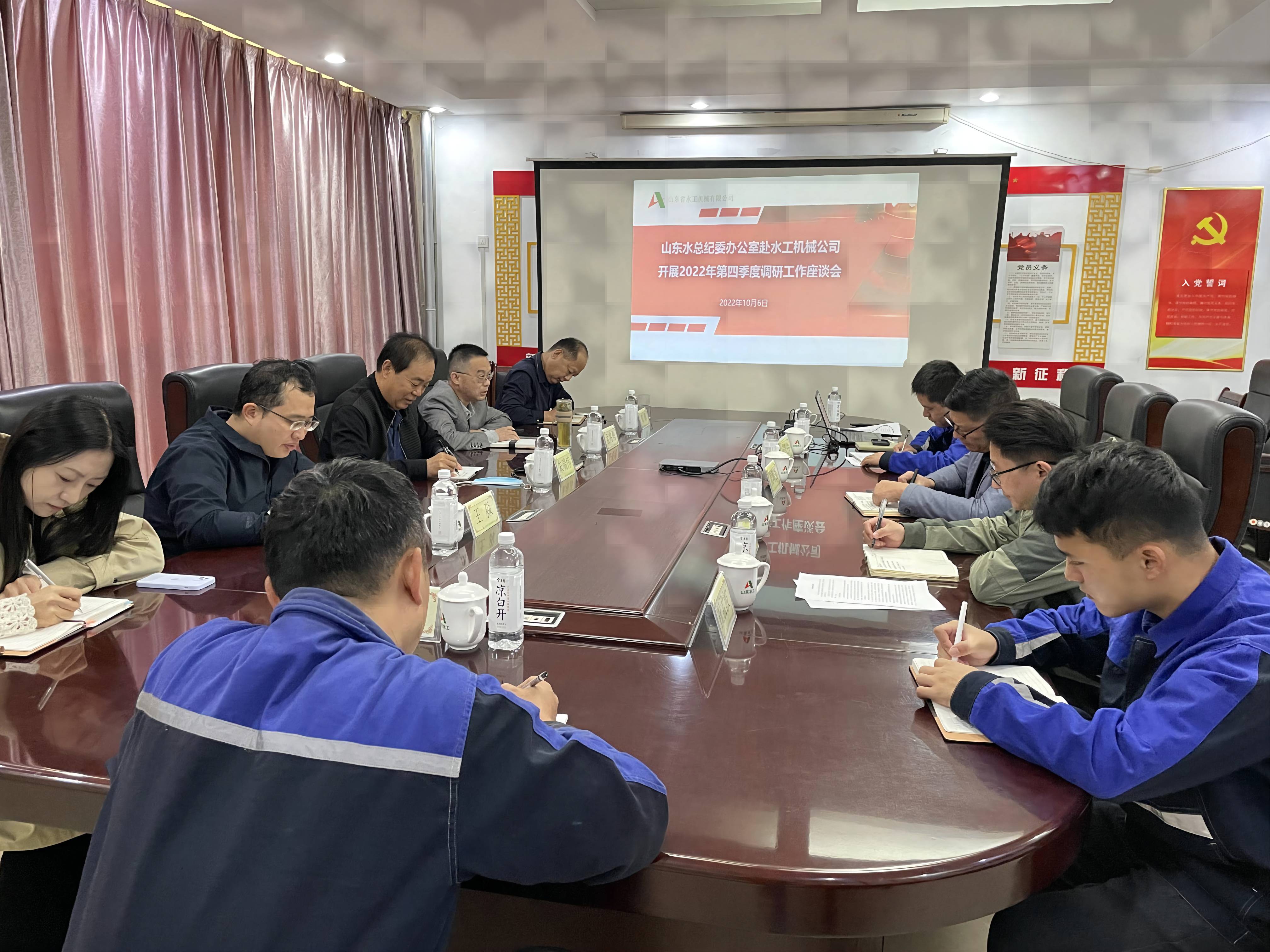 10月5日,調(diào)研組首先在水工機(jī)械公司三樓召開座談會(huì),聽取水工機(jī)械公司機(jī)料采購、廢料處理、成本控制等情況匯報(bào),以及公司在各項(xiàng)工作中遇到的難題及下一步工作措施,對(duì)有關(guān)問題給予現(xiàn)場指導(dǎo)。調(diào)研組指出,公司目前各項(xiàng)任務(wù)還十分艱巨,面對(duì)錯(cuò)綜復(fù)雜的形勢(shì)和艱巨繁重任務(wù),要深入貫徹上級(jí)黨委的總體要求,堅(jiān)決落實(shí)集團(tuán)公司的各項(xiàng)決策部署,動(dòng)員全體干部職工,積極應(yīng)對(duì)安全環(huán)保、生產(chǎn)經(jīng)營、產(chǎn)品質(zhì)量“三重”大戰(zhàn)大考,堅(jiān)定信心、攻堅(jiān)克難、苦干實(shí)干。隨后,調(diào)研組一行實(shí)地查看生產(chǎn)車間,了解項(xiàng)目進(jìn)展,認(rèn)真檢查現(xiàn)場安全生產(chǎn)落實(shí)情況,聽取職工訴求和意見建議。