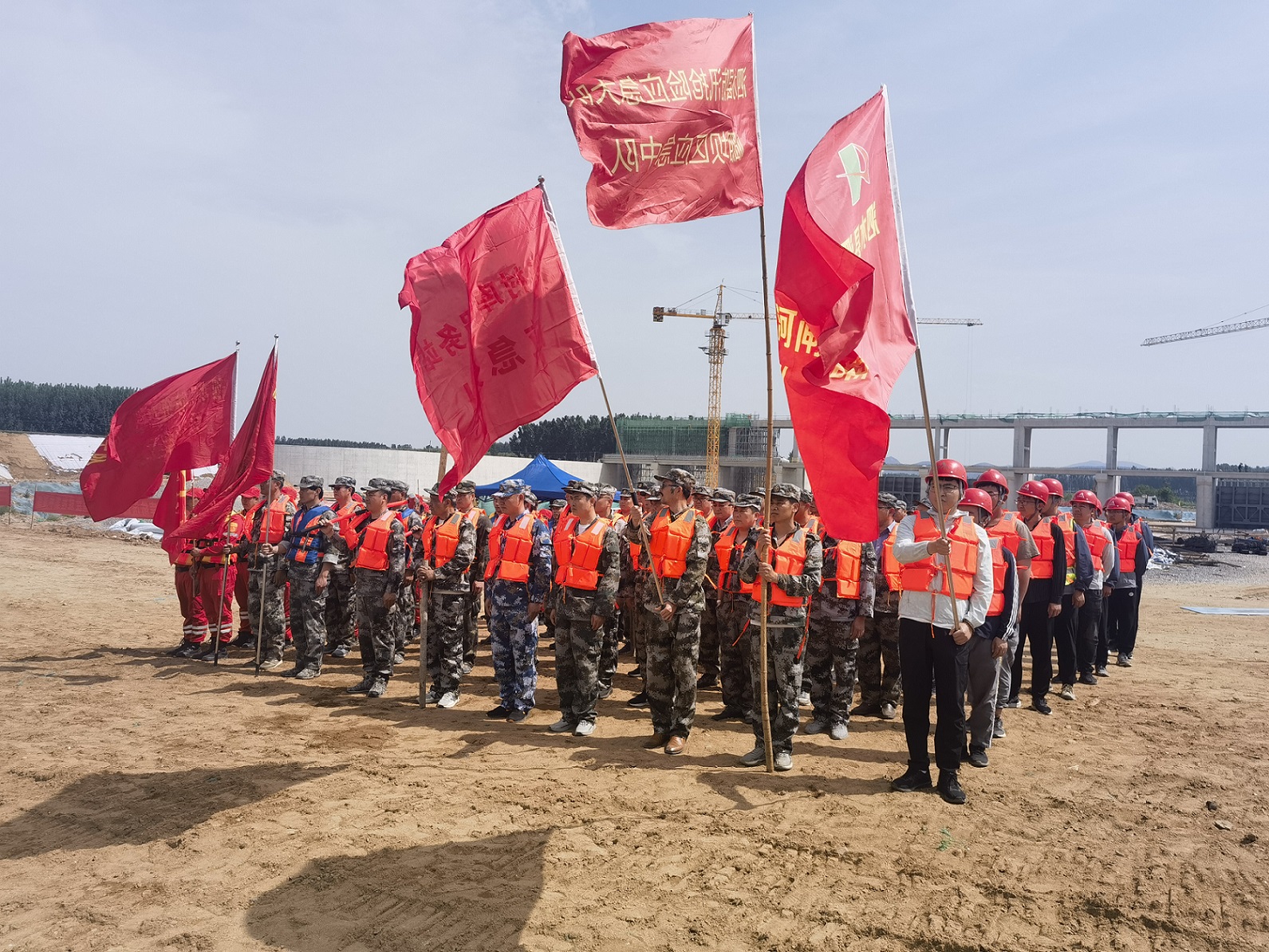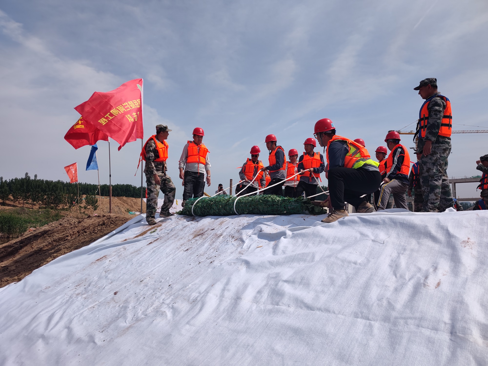 5月9日下午,第七分公司泗水縣泗河岳陵攔河閘項目部聯(lián)合泗水縣水務(wù)局、泗水縣應(yīng)急局等單位開展了岳陵攔河閘工程防汛應(yīng)急救援演練。本次模擬演練設(shè)置壩前坍塌搶護、壩后管涌搶護、增高子堰搶護3個演練場景。