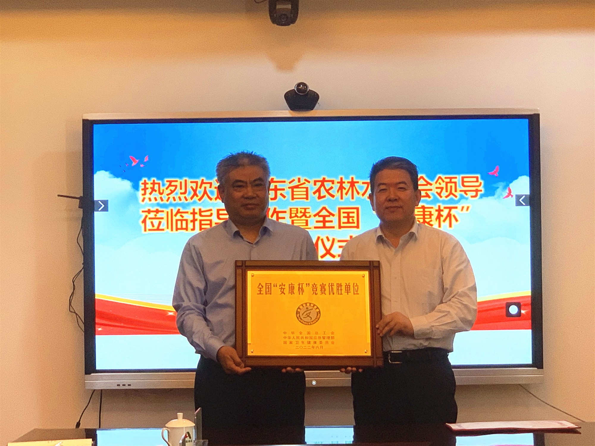 儀式上,劉深遠匯報公司2022年度工會工作及“安康杯”競賽活動開展情況,張志剛宣讀全國、山東省“安康杯”競賽活動表彰決定,山東水總公司榮獲全國、山東省“安康杯”優(yōu)勝單位的榮譽稱號。