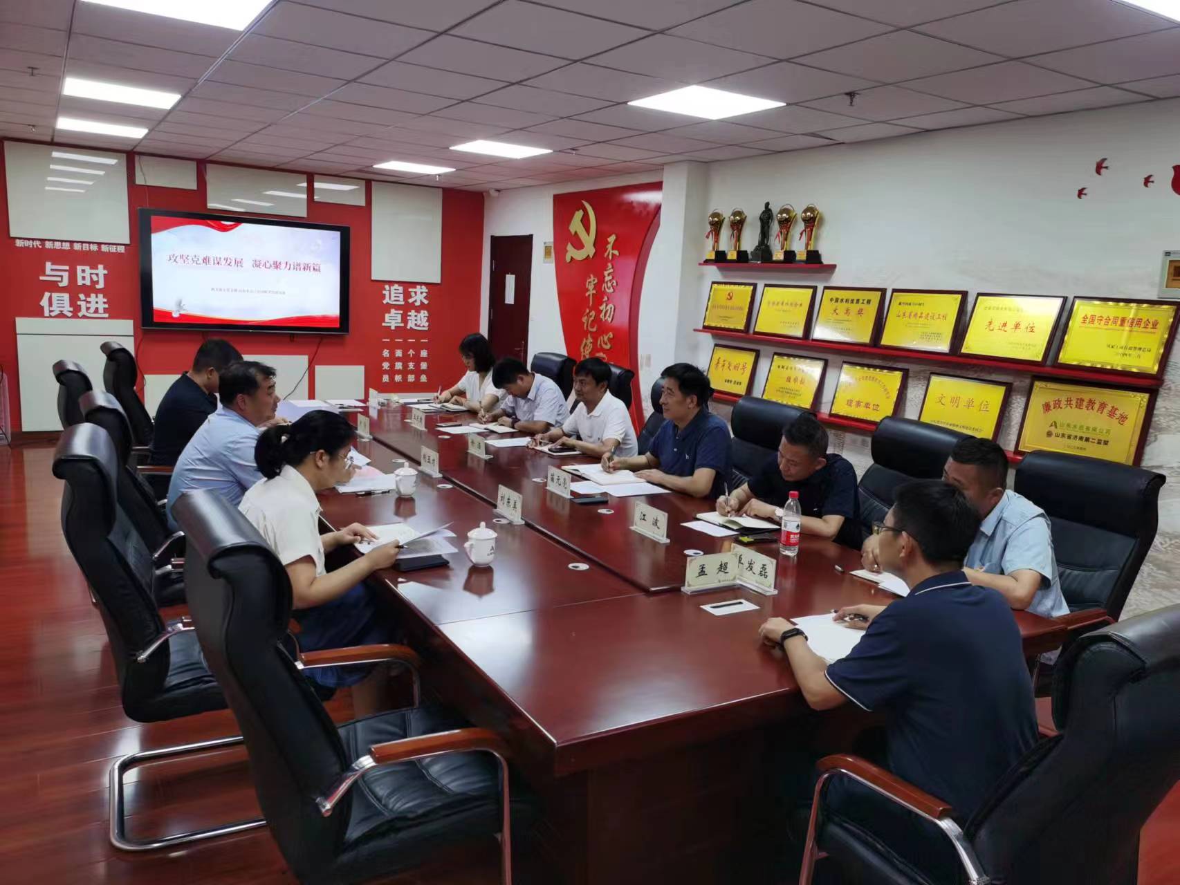 為深刻把握主題教育要求,荊玉才用“以學(xué)增智中不斷提升三種能力”為題進行了黨課的講授,第三分公司黨支部書記、總經(jīng)理徐浩作為代表發(fā)言,談了學(xué)習(xí)體會。隨后,雙方結(jié)合第三分公司沭河上游治理項目的科技創(chuàng)新調(diào)研課題進行深入的交流討論。荊玉才借用習(xí)近平總書記2020年在企業(yè)家座談會上的講話談了幾點要求,希望大家增強愛國情懷、勇于創(chuàng)新、誠信守法、承擔(dān)社會責(zé)任、拓展國際視野,深入學(xué)習(xí)貫徹習(xí)近平總書記關(guān)于加快建設(shè)世界一流企業(yè)的重要指示精神。