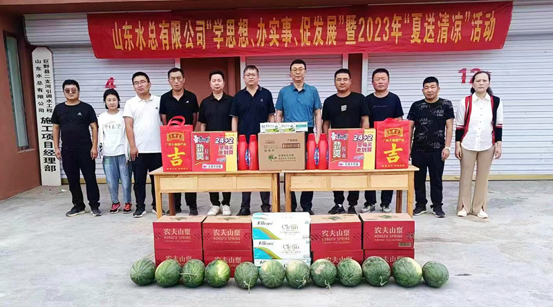 為持續(xù)推動學(xué)習(xí)貫徹習(xí)近平新時(shí)代中國特色社會主義思想主題教育走深走實(shí),切實(shí)維護(hù)廣大職工的勞動健康權(quán)益,常態(tài)化開展“我為群眾辦實(shí)事”實(shí)踐活動,7月6日,公司總會計(jì)師楊利軍到二局有限公司巨野縣二支河引調(diào)水工程開展“學(xué)思想、辦實(shí)事、促發(fā)展”暨2023年“夏送清涼”活動。二局有限公司黨委書記、總經(jīng)理王傳波,副總經(jīng)理劉波、李灝,總會計(jì)師王佃志等陪同參加。