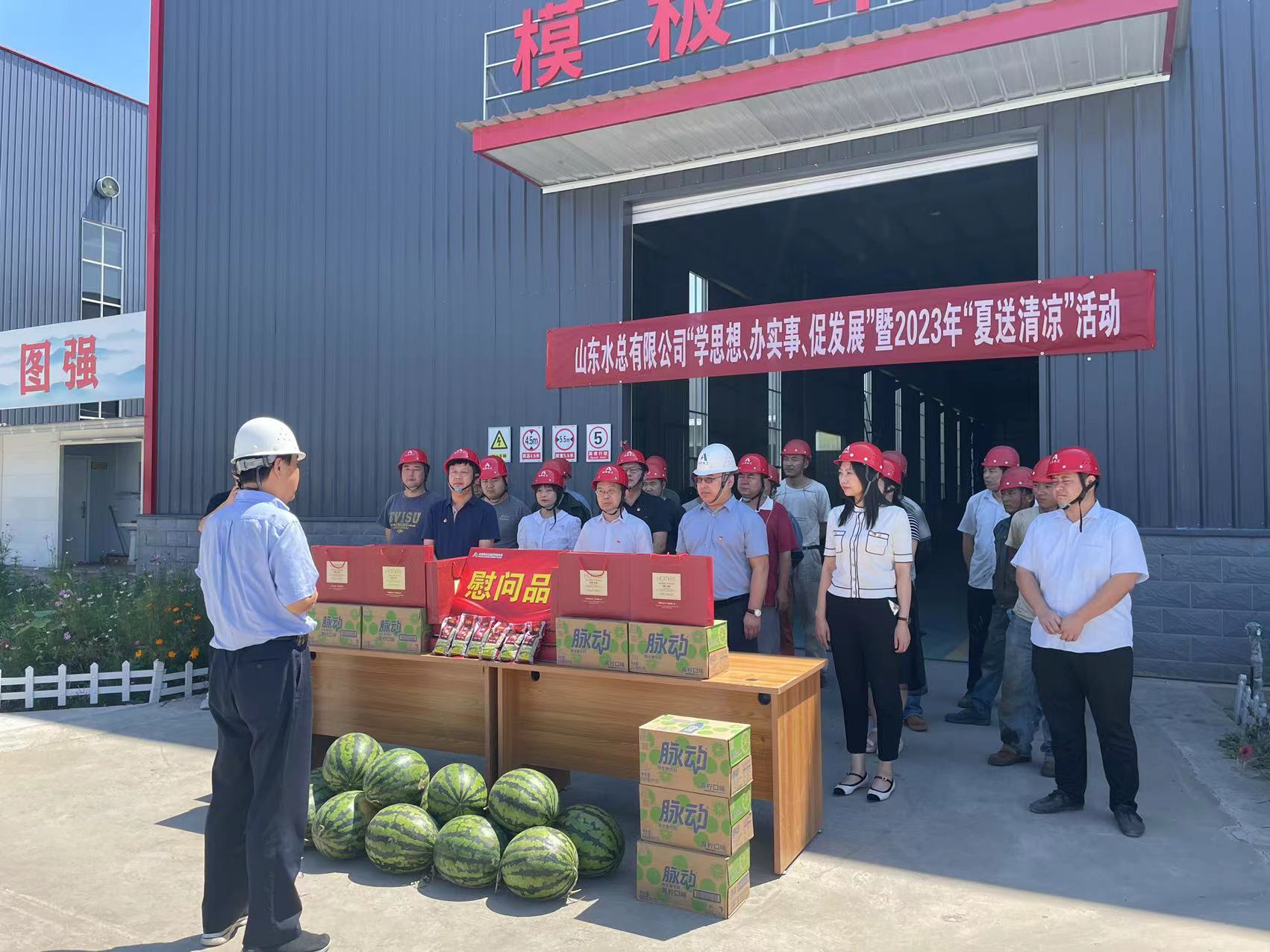為推進(jìn)學(xué)習(xí)貫徹習(xí)近平新時(shí)代中國(guó)特色社會(huì)主義思想主題教育走深走實(shí),持續(xù)為職工群眾辦實(shí)事,傳遞公司黨委、工會(huì)對(duì)一線職工的關(guān)心關(guān)愛(ài),7月18日,山東水總黨委委員、紀(jì)委書記朱瑞偉一行到水工機(jī)械公司開(kāi)展“學(xué)思想、辦實(shí)事、促發(fā)展”暨2023年“夏送清涼”慰問(wèn)活動(dòng)。