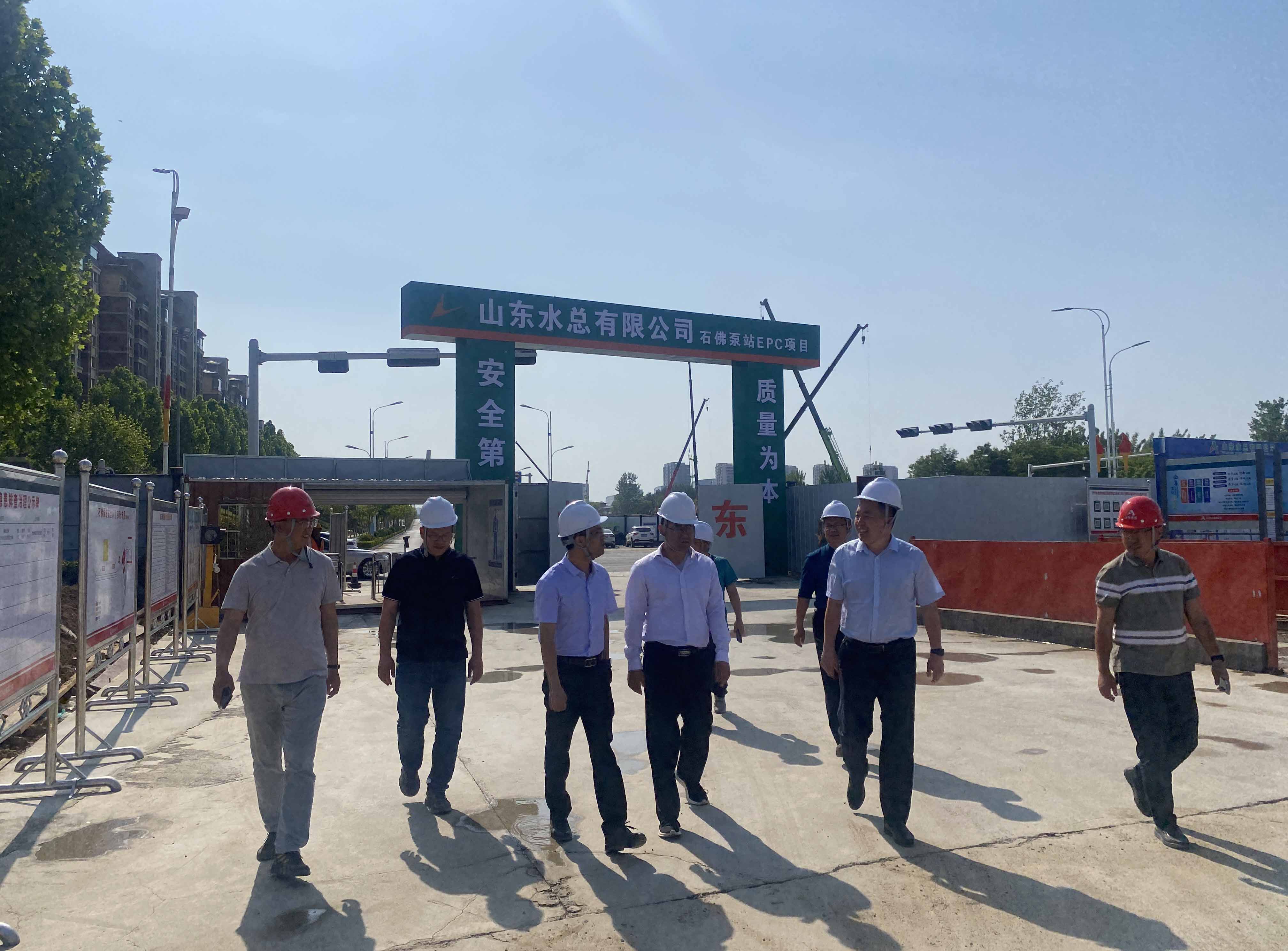 公司黨委副書記、董事、總經(jīng)理靳文碩、黨委委員、副總經(jīng)理袁英杰、安全總監(jiān)郭法文一行到第七分公司濟(jì)寧市石佛泵站項(xiàng)目檢查調(diào)研工作