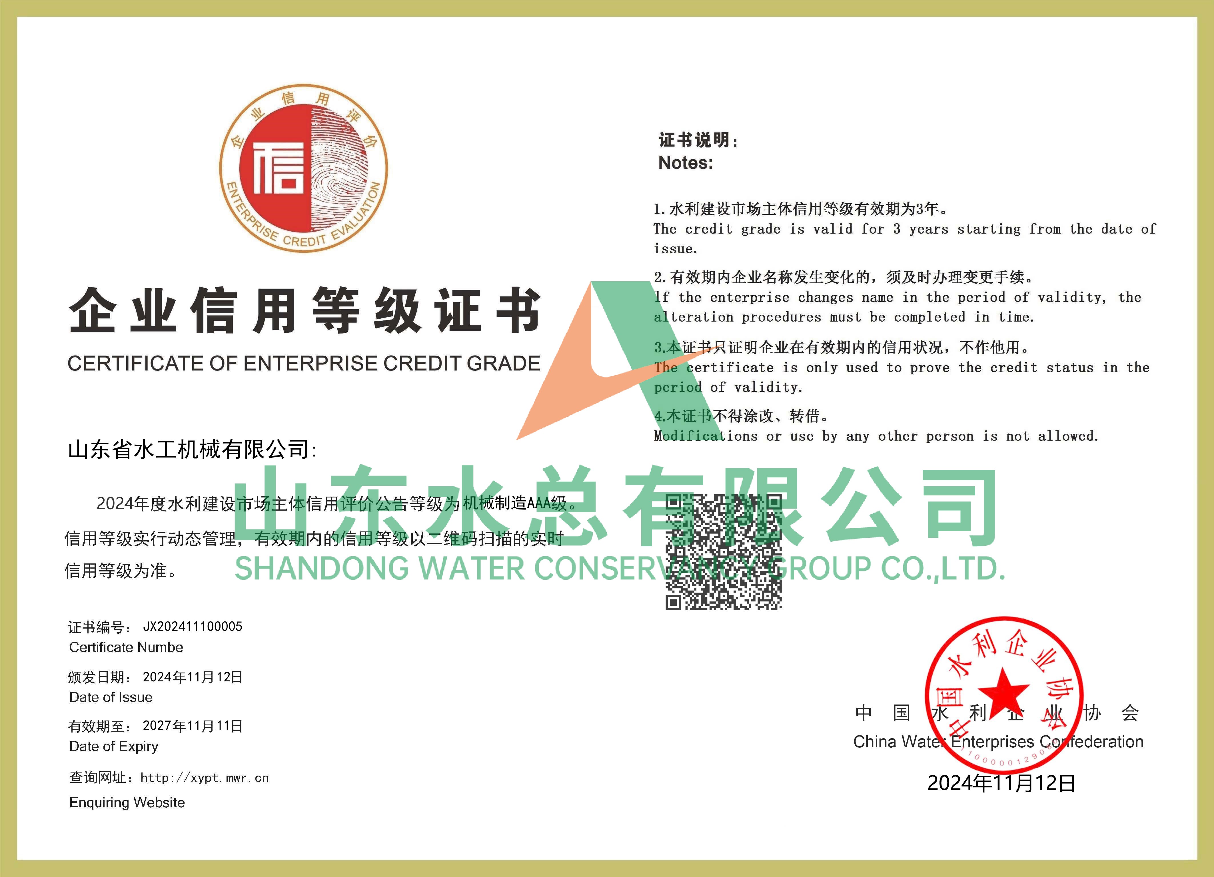 水工機械公司獲全國水利建設(shè)市場AAA主體信用評價