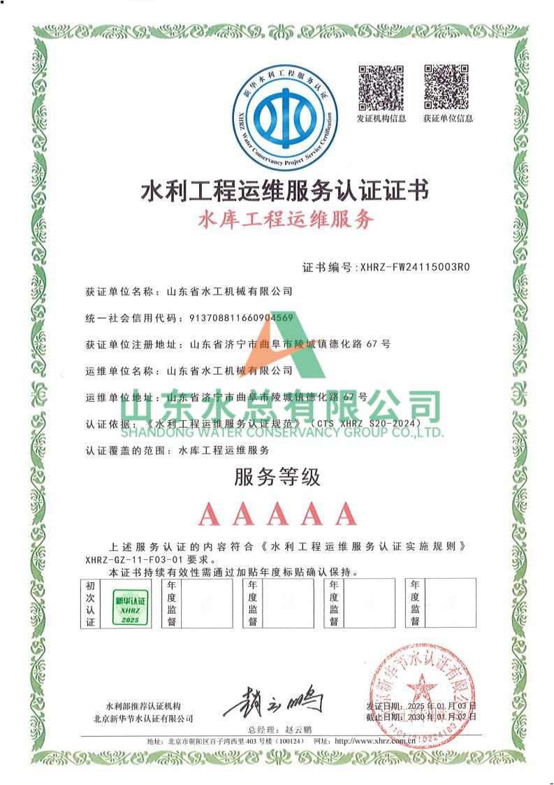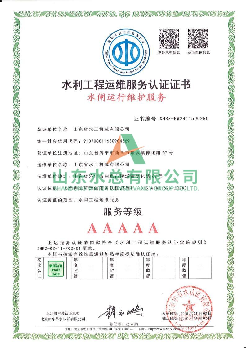 一直以來,水工機(jī)械公司高度重視水利工程運(yùn)維服務(wù)的質(zhì)量與專業(yè)性,在人員配備、技術(shù)應(yīng)用、管理體系等多方面精心打磨。在認(rèn)證過程中,歷經(jīng)嚴(yán)格審核,公司憑借扎實(shí)的運(yùn)維實(shí)力、規(guī)范的服務(wù)流程以及對水利工程運(yùn)維高規(guī)格的執(zhí)行標(biāo)準(zhǔn),贏得了認(rèn)可。