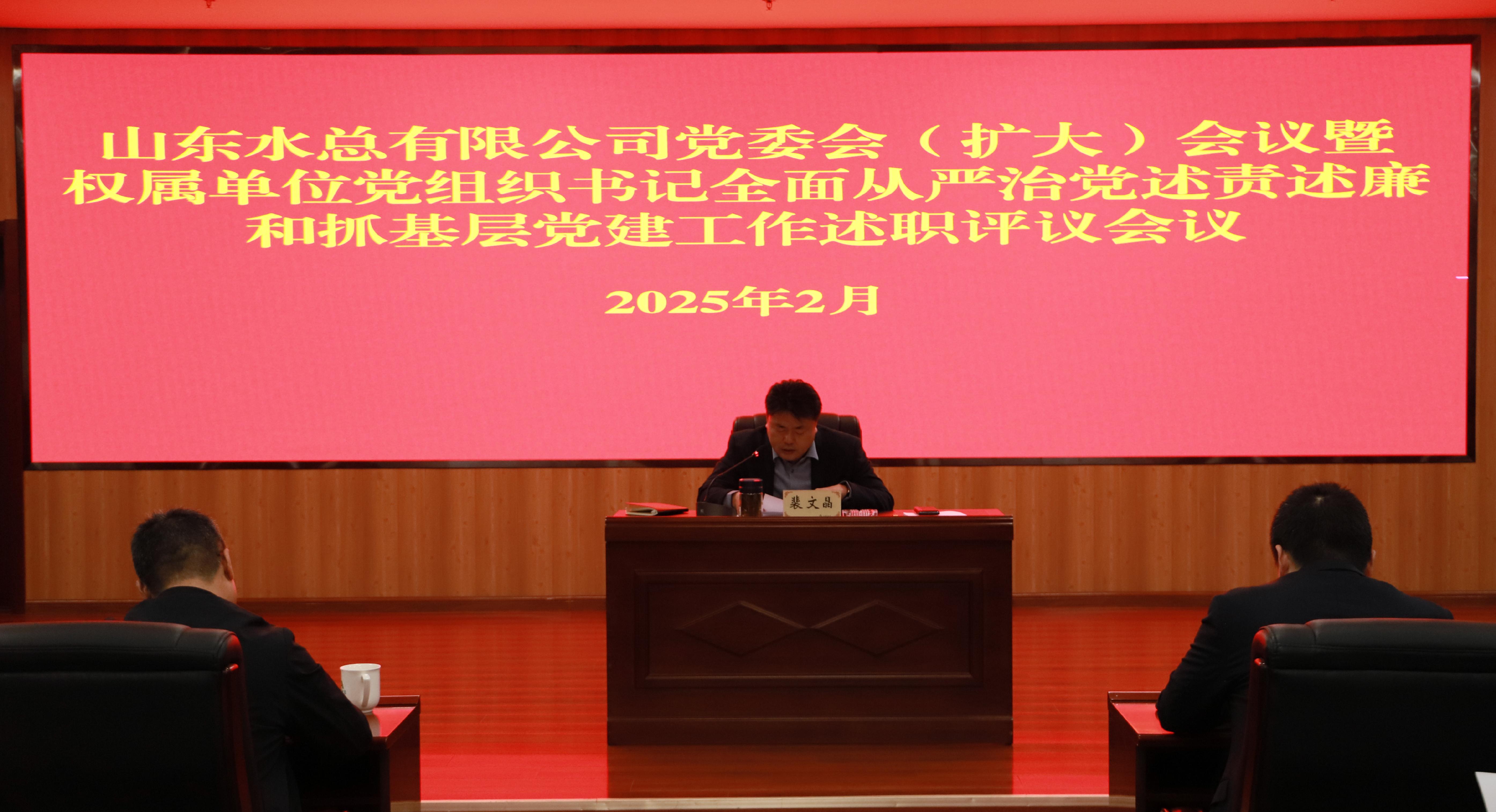 2月6日,山東水總有限公司召開黨委(擴大)會議,分別聽取權(quán)屬單位黨支部書記2024年度全面從嚴治黨述責述廉和抓基層黨建工作述職,并進行現(xiàn)場評議。山東水總有限公司黨委書記、董事長裴文晶同志主持會議并講話,公司黨委班子成員及高管、總部有關(guān)部室負責人及權(quán)屬單位黨組織書記和基層黨員代表參會。