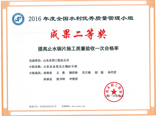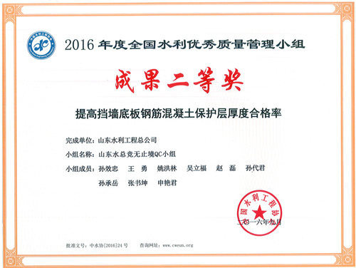 公司“竟無止境QC小組”榮獲2016年全國水利優(yōu)秀質(zhì)量管理小組