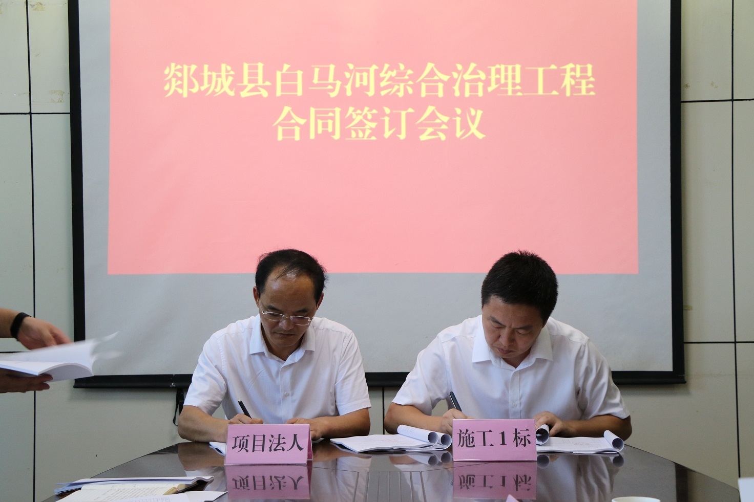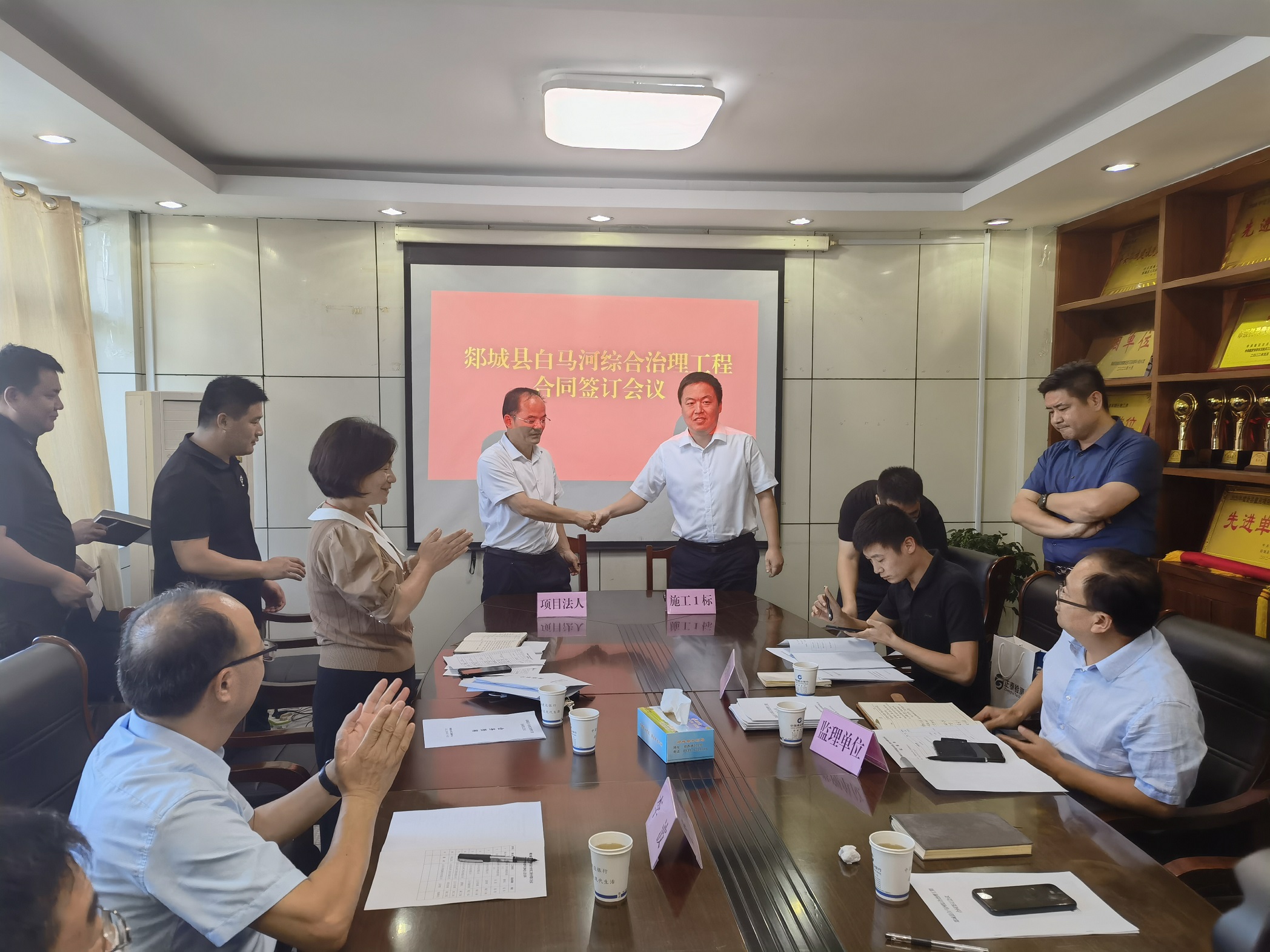9月13日下午,郯城縣白馬河綜合治理工程合同簽約儀式在郯城縣水利局舉行。公司黨委副書記、董事、總經(jīng)理靳文碩出席簽約儀式,第三分公司副總經(jīng)理徐浩陪同。