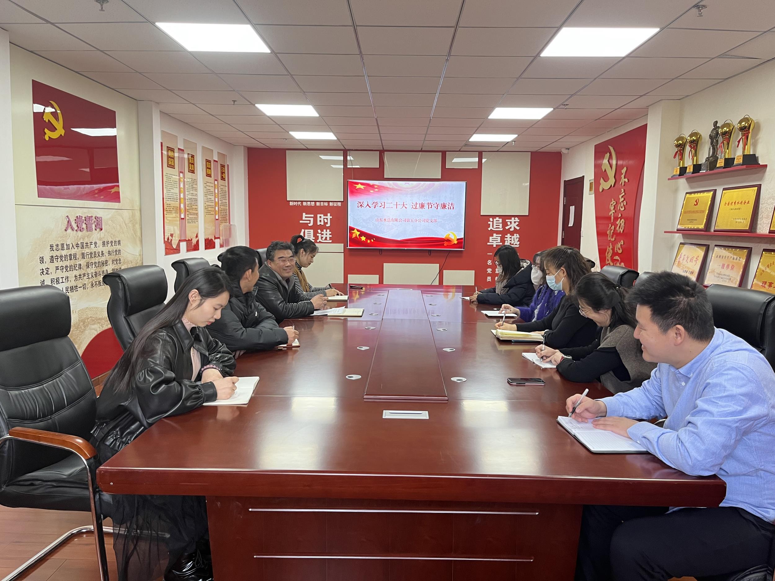 為進(jìn)一步學(xué)習(xí)貫徹黨的二十大精神,抓好春節(jié)期間黨風(fēng)廉政建設(shè),1月19日,第五分公司黨支部開展主題黨日暨春節(jié)廉政黨課專題會議。